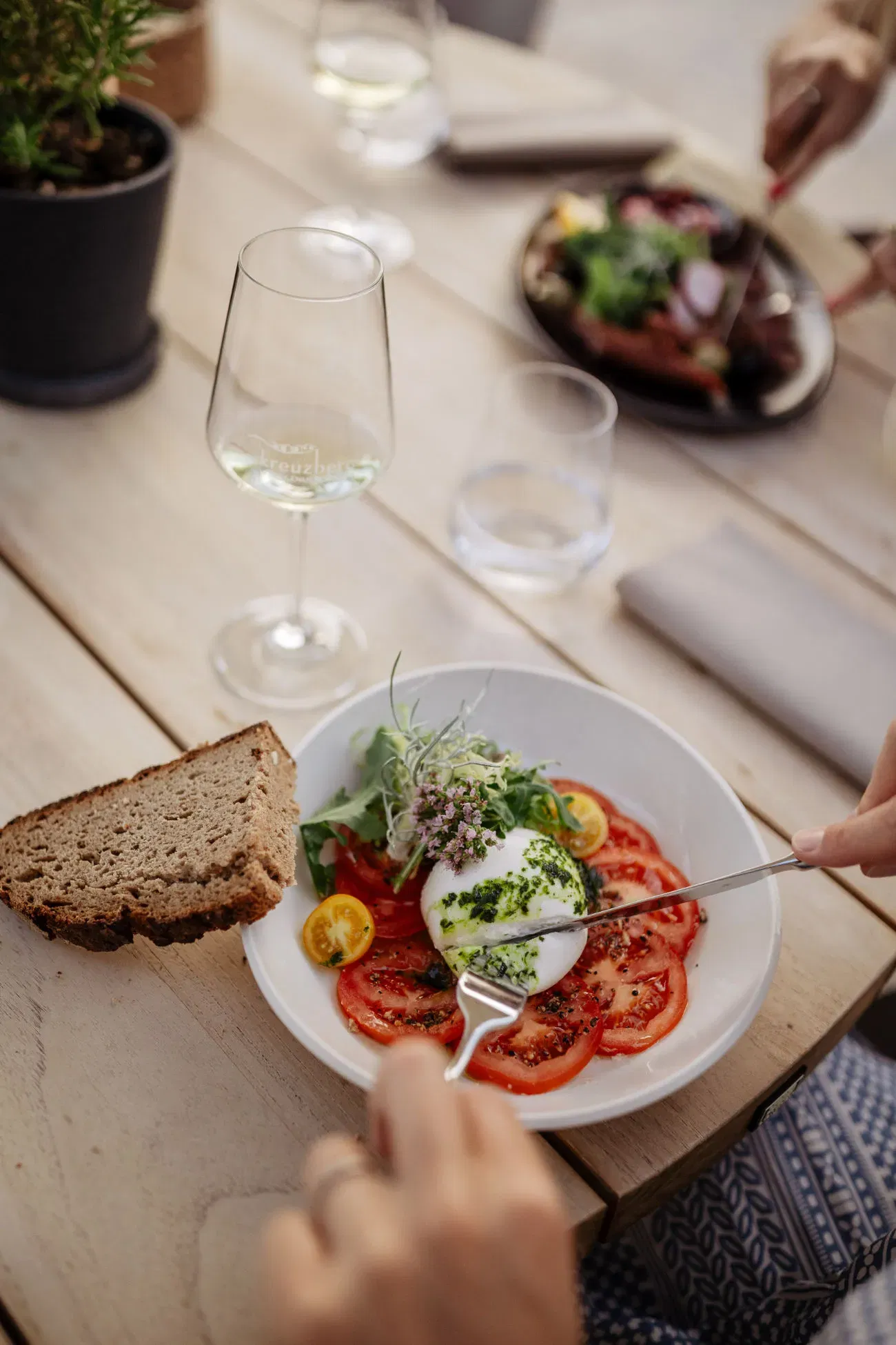 Sobald Sie im Kanu am Anlegeplatz angekommen sind, nehmen wir Sie in Empfang und Sie fahren zum Weingut. Im Weingut erwartet Sie schließlich der kulinarische Höhepunkt des Tages.